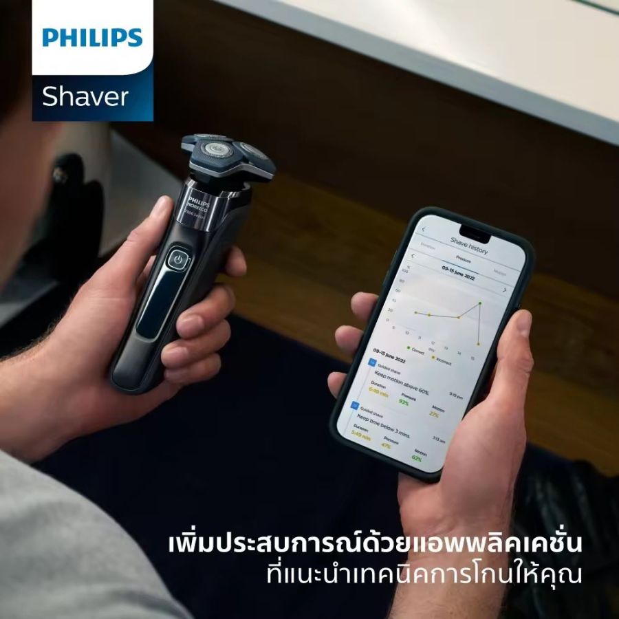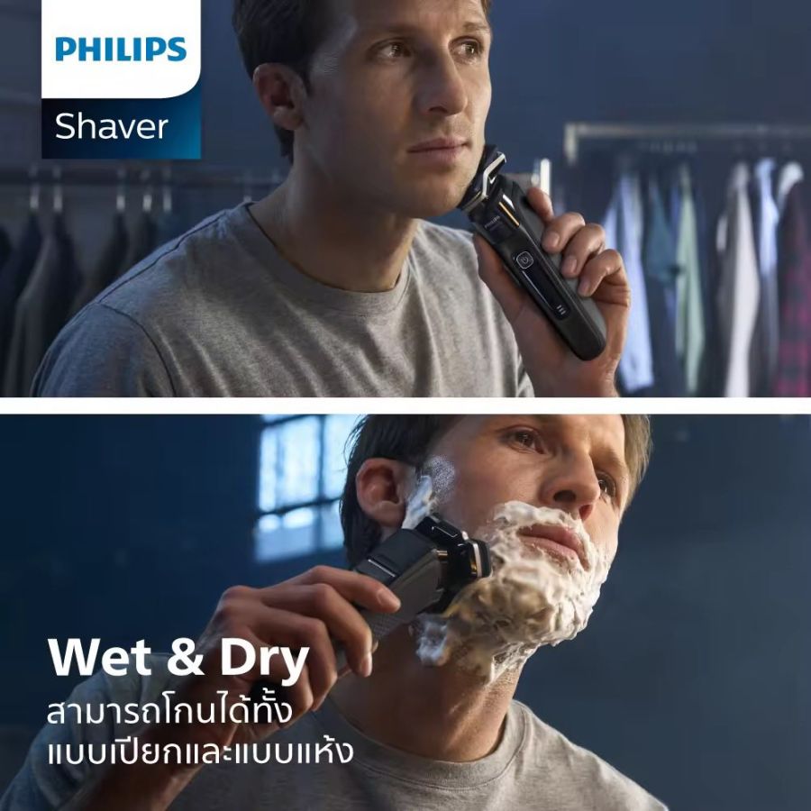 Philips ฟิลิปส์ เครื่องโกนหนวดไฟฟ้า Skin IQ เร็ว แรง สบายผิว พร้อมพอตทำความสะอาด รุ่น S7886/50