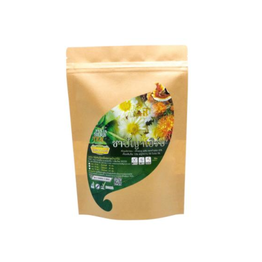 ชาปัญจเฮิร์บ แบรนด์เนตรสวรรค์ อยู่คู่คนไทยมามากกว่า 10 ปี (5 in 1) ประกอบด้วย เก็กฮวย ดอกคำฝอย เห็ดหลินจือ หญ้าหวาน ใบเตย